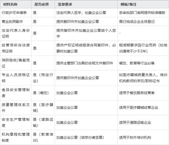 正在企业注册前,分歧业业需预备的行政许可是成功运营的环节前提。餐饮行业需沉点打点《食物运营许可证》,审查沉点正在结构取卫生;医疗器械运营第三类产物必需取得《医疗器械运营许可证》,对人员、场地、计较机系统有严酷要求;校外培训机构实行先证后照,需申请《办学许可证》,并对场地平安、师资、资确尺度;道运输企业则需《道运输运营许可证》,车辆、驾驶员和平安出产轨制是焦点。